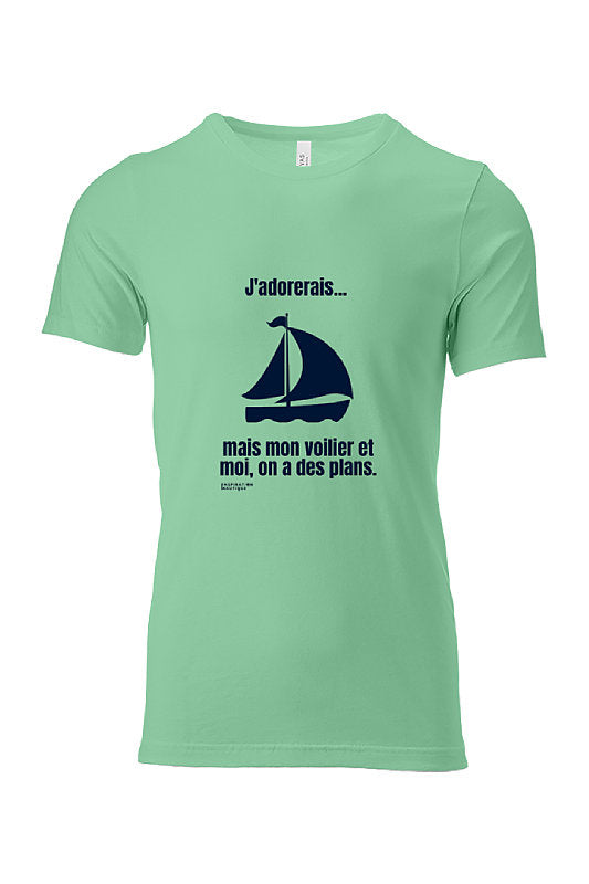 T-shirt unisexe col rond - J'adorerais... mais mon voilier et moi, on a des plans - Visuel marine