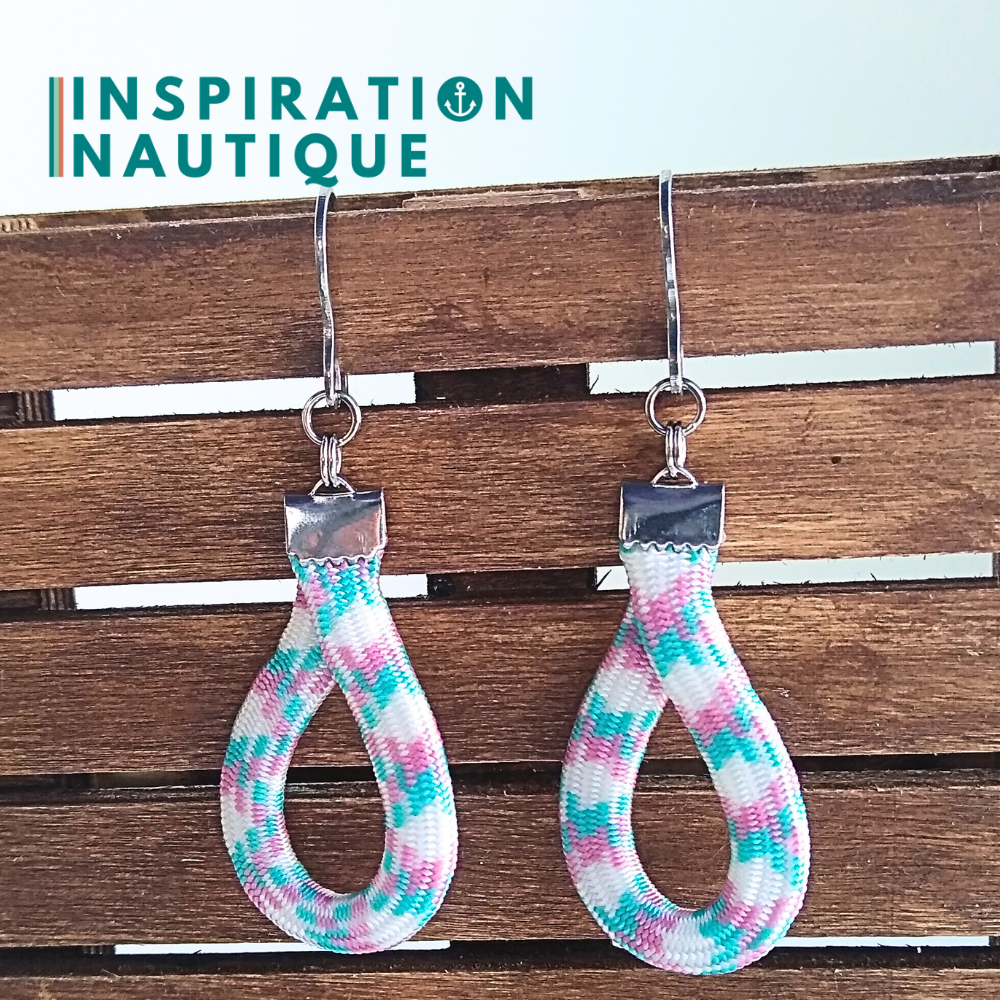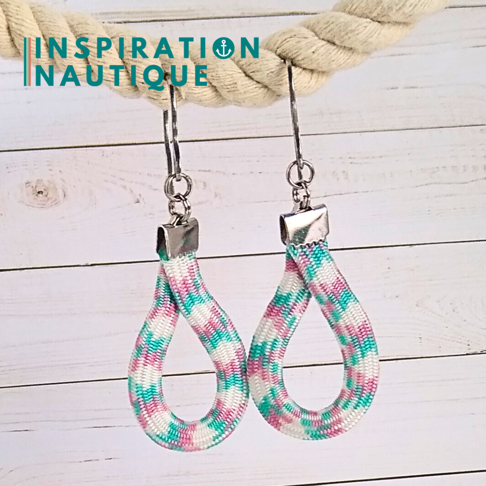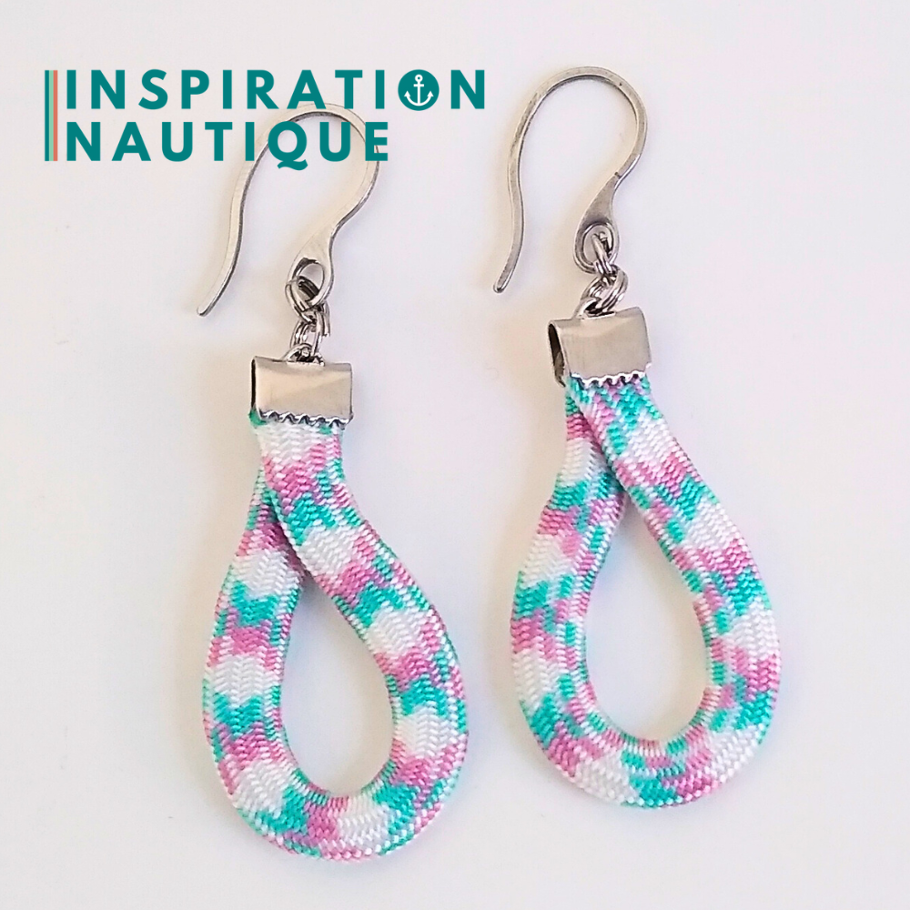 Boucles d'oreilles aux couleurs nautiques en forme de goutte. Elles sont composées de paracorde et d'un crochet en acier inoxydable.