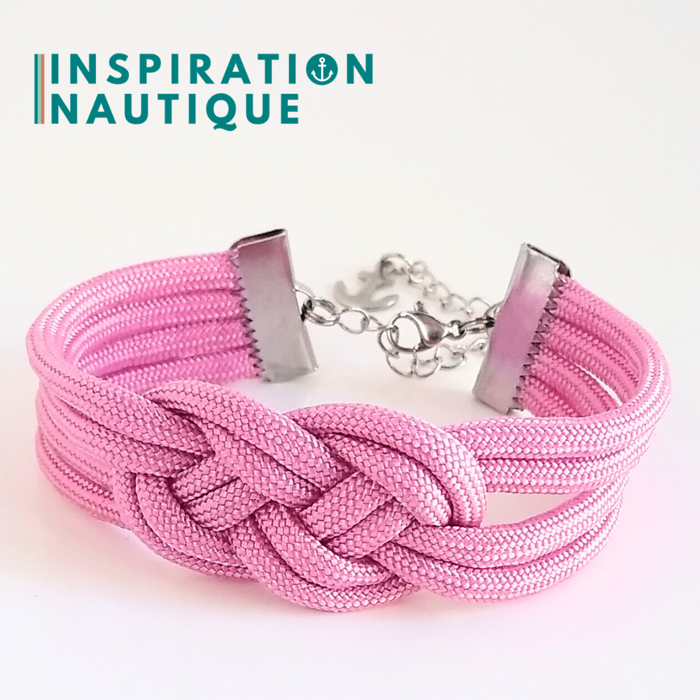Bracelet marin avec noeud de carrick double unisexe, en paracorde 550 et acier inoxydable, Rose lavande, Medium