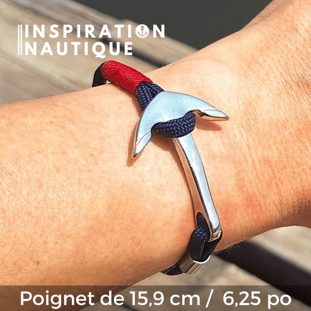 Bracelet nautique avec ancre. Un classique! Il est composé d'un cordage résistant, de fil à surlier marin et d'un connecteur en acier inoxydable. Le noeud de pêcheur permet d'ajuster la grandeur. Parfait pour un cadeau!