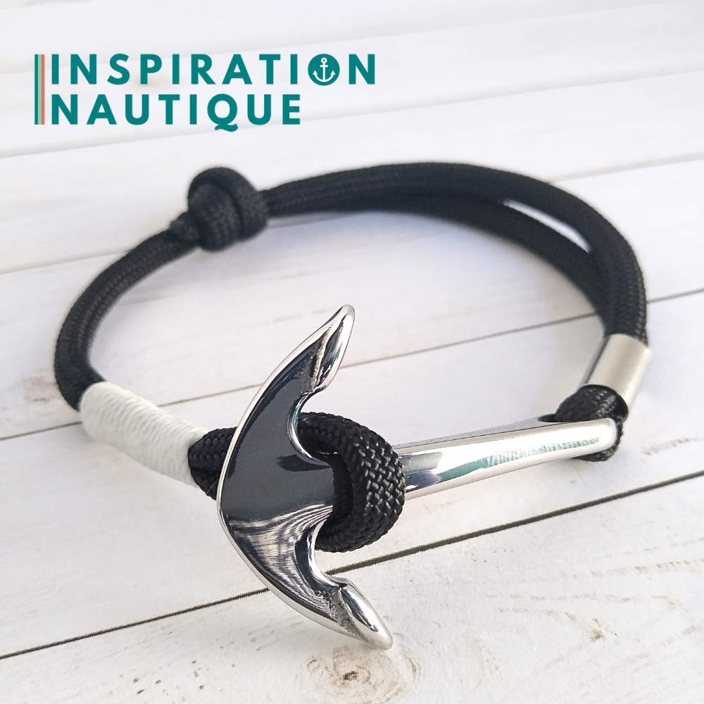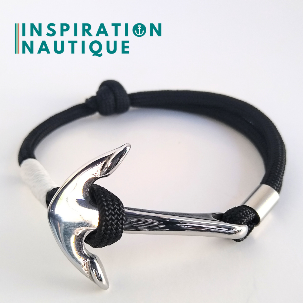 Bracelet marin avec ancre en paracorde 550 et acier inoxydable, ajustable, Noir