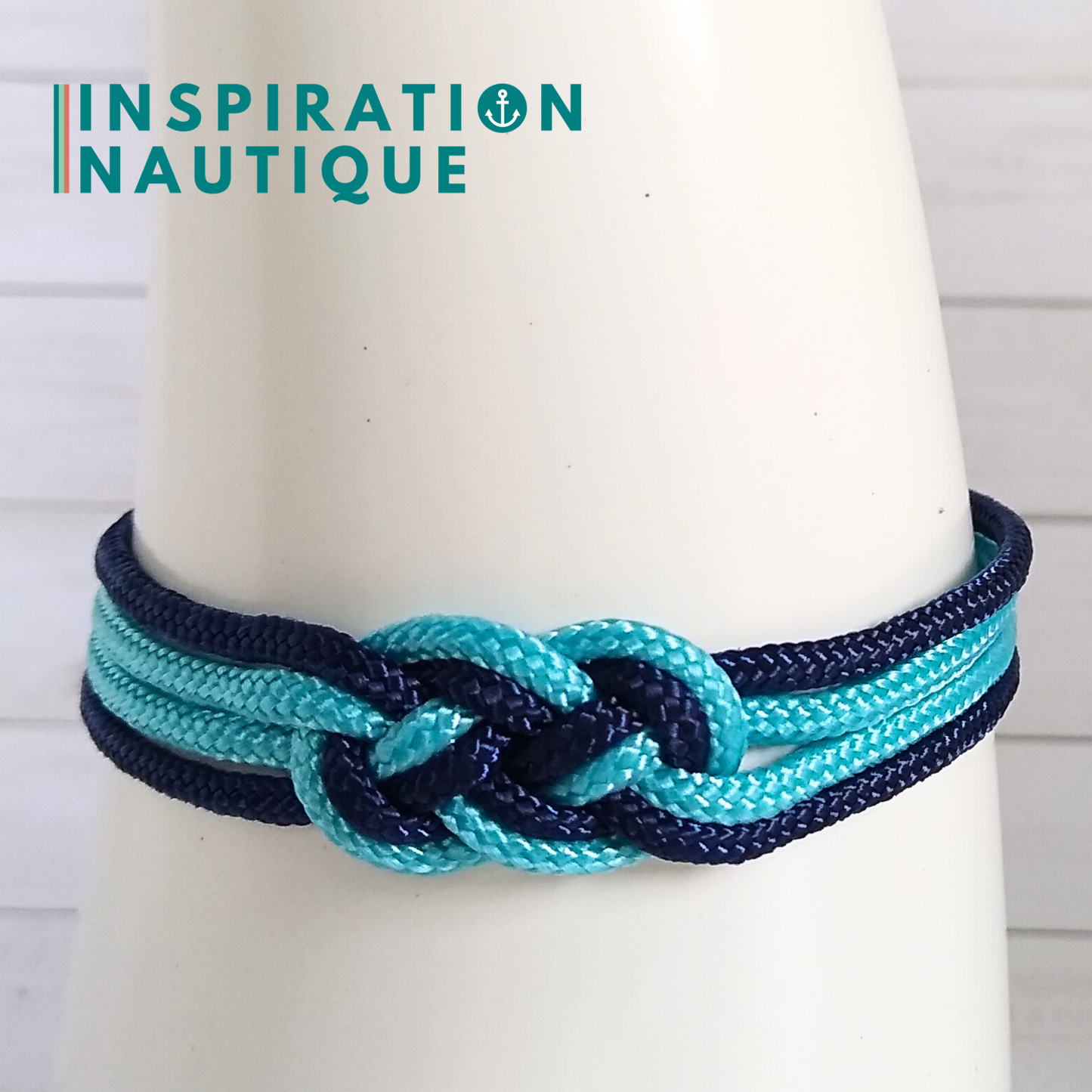 Bracelet marin avec mini noeud de carrick double, Turquoise et marine